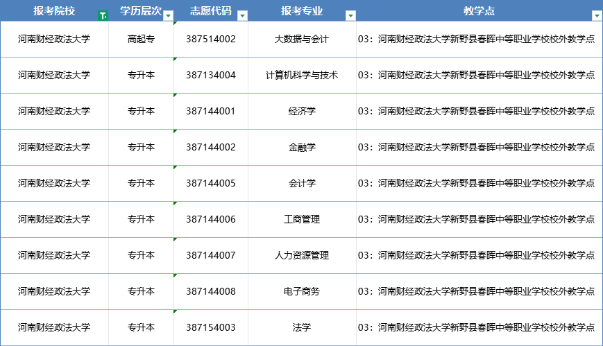 (5)河南财经政法大学、河南中医药大学、豫北医学院: