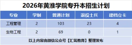 2026年黄淮学院专升本招生计划