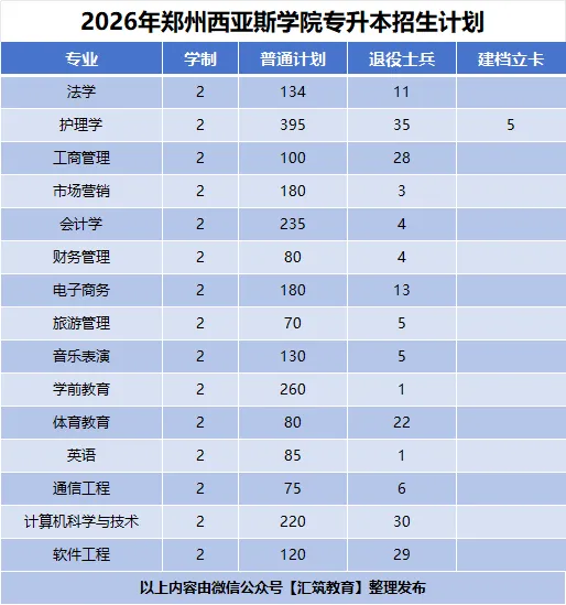 2026年郑州西亚斯学院专升本招生计划