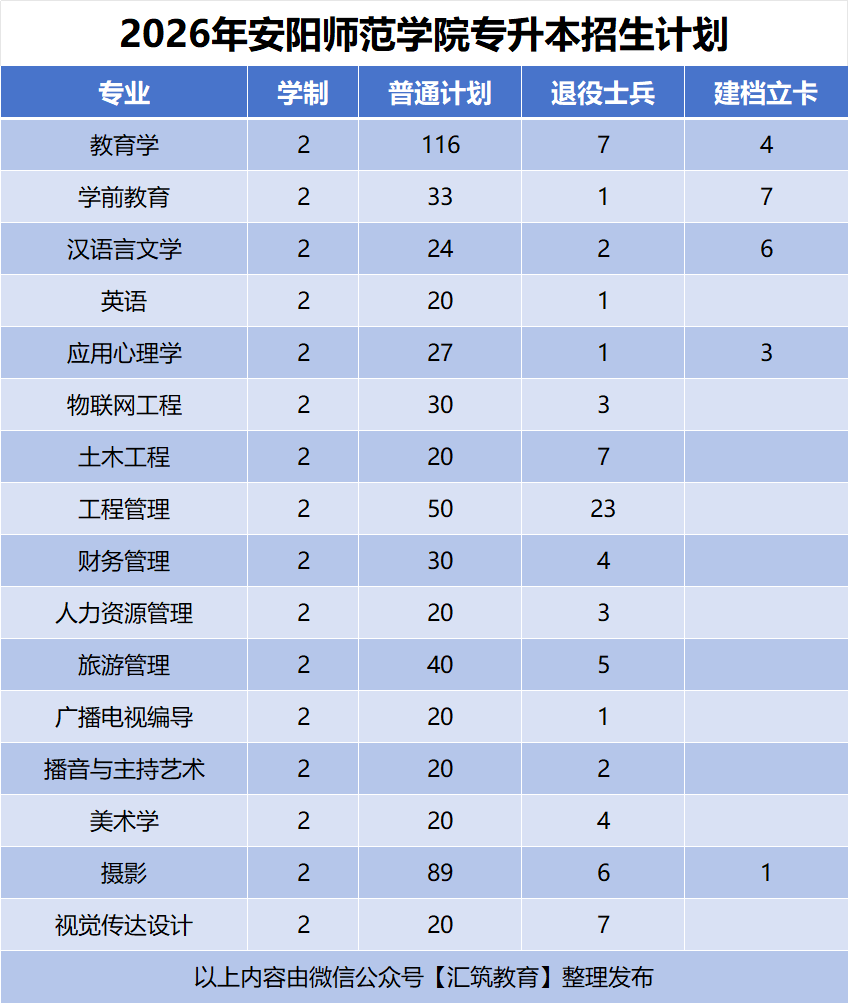 2026年安阳师范学院专升本招生计划