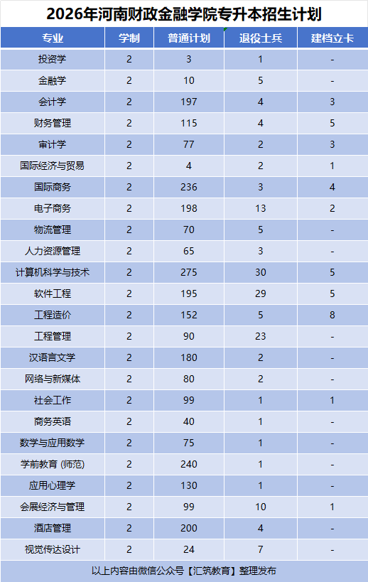2026年河南财政金融学院专升本招生计划
