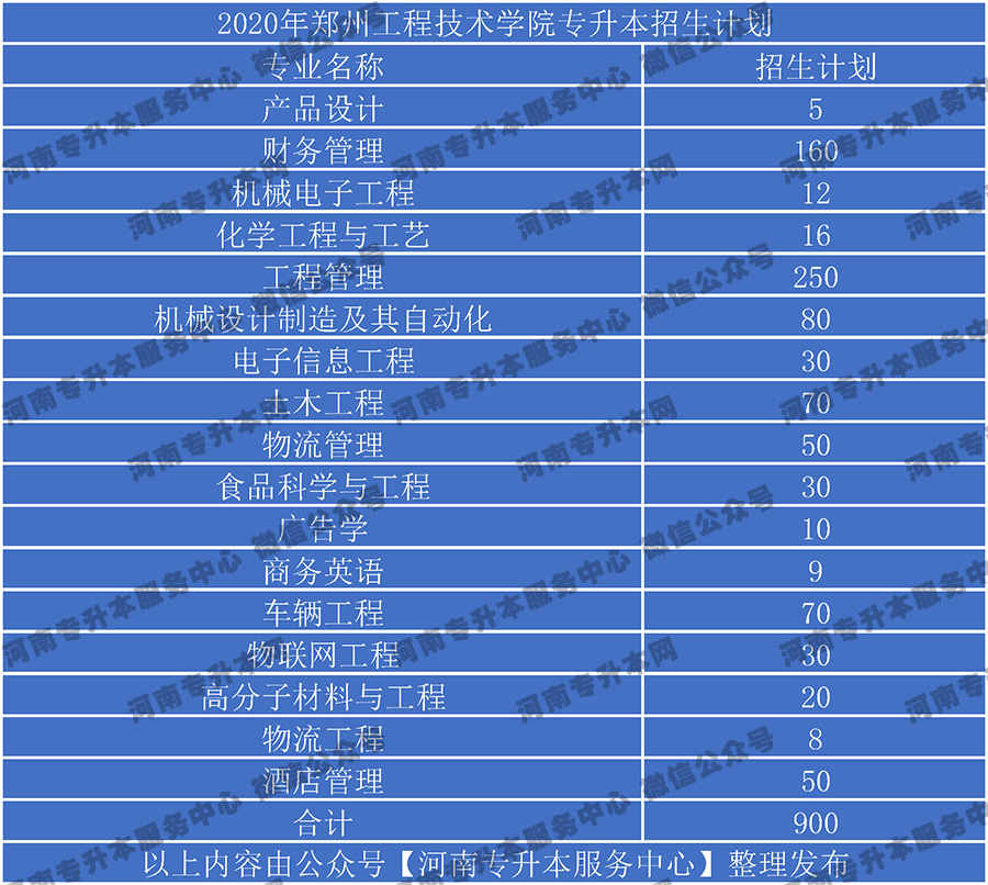 2020年河南专升本郑州工程技术学院专升本招生计划
