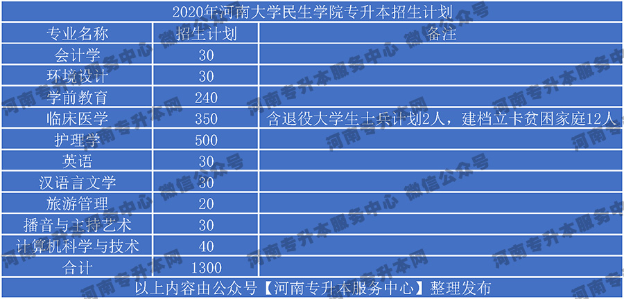 2020年河南专升本河南大学民生学院专升本招生计划